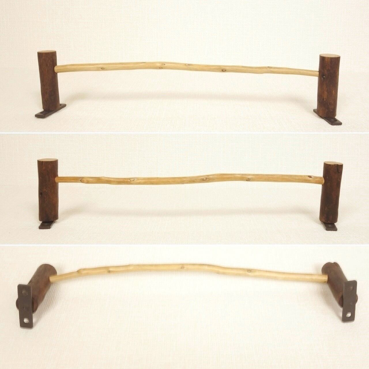画像ではハンドタオルを掛けております。タオルを掛ける部分の幅は約 30cm、流木の径は 0.9cmです。