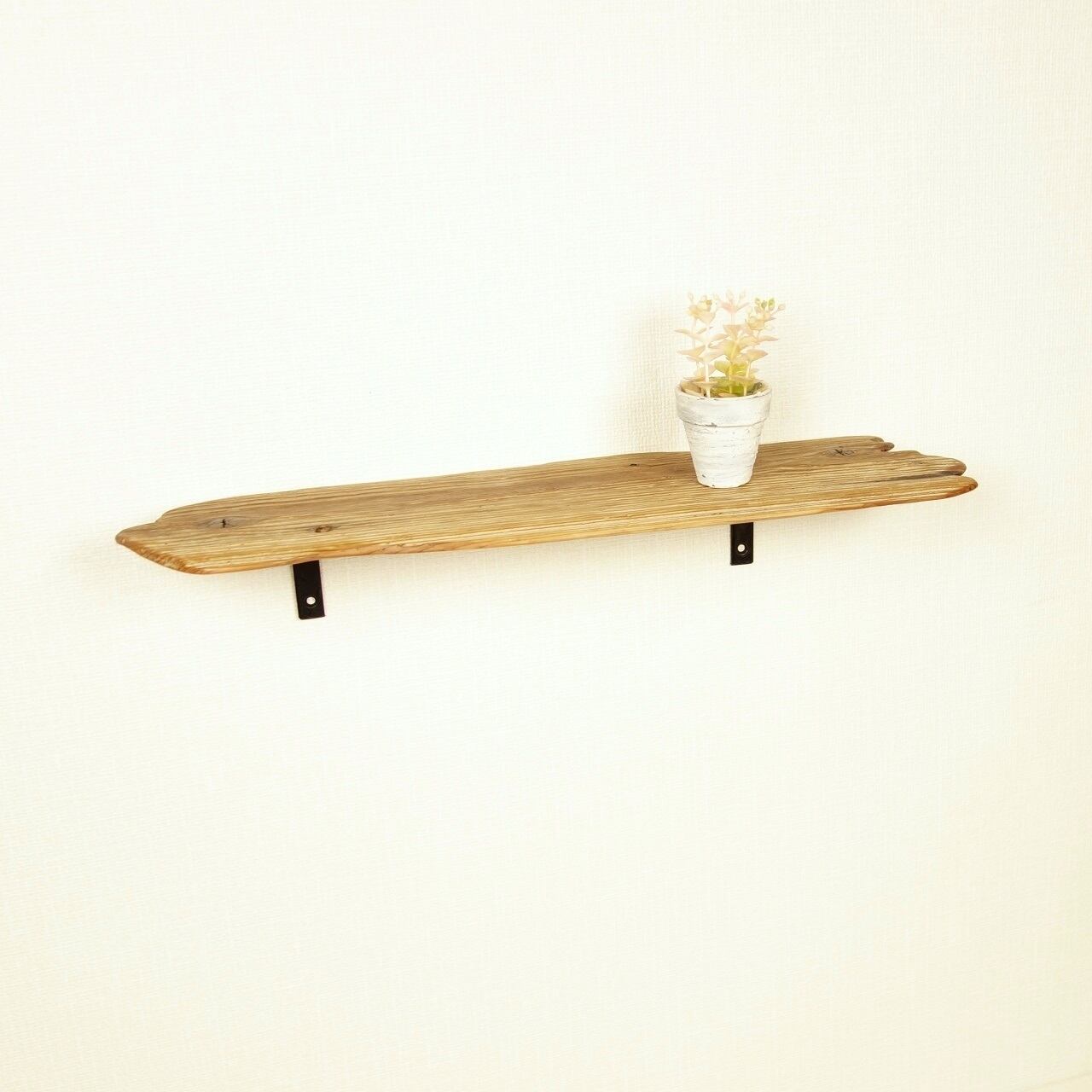 レトロ感ある流木板につや消しブラックのシンプルなL字金具を組み合わせた壁掛け棚です。