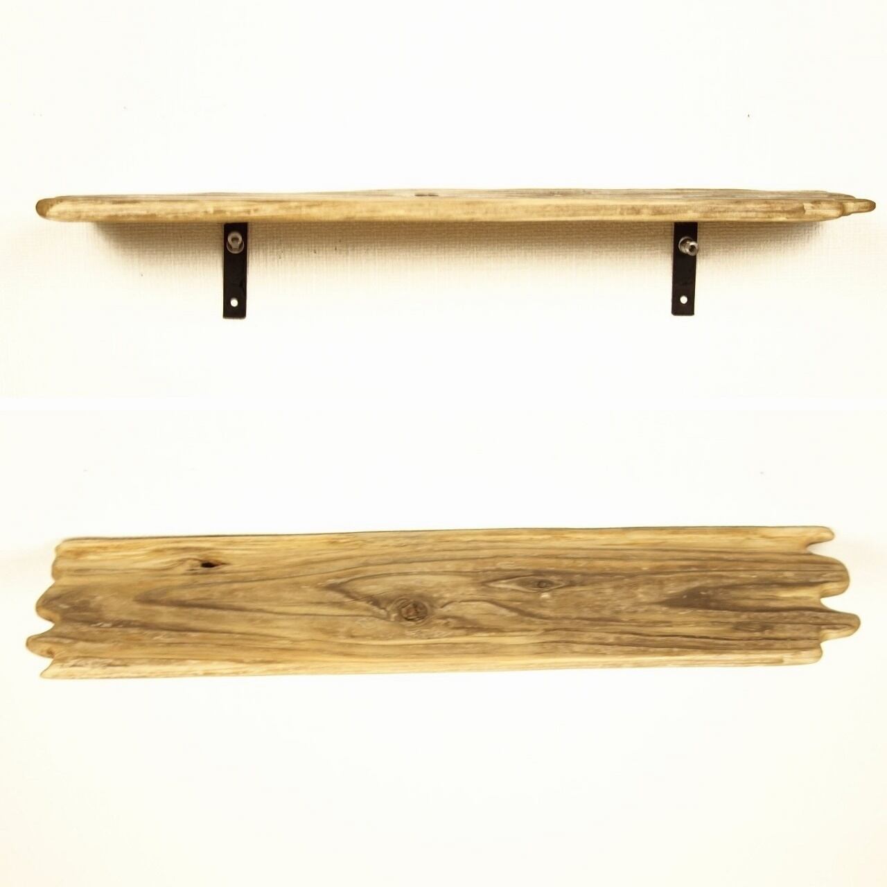 レトロ感ある流木板につや消しブラックのシンプルなL字金具を組み合わせた壁掛け棚です。