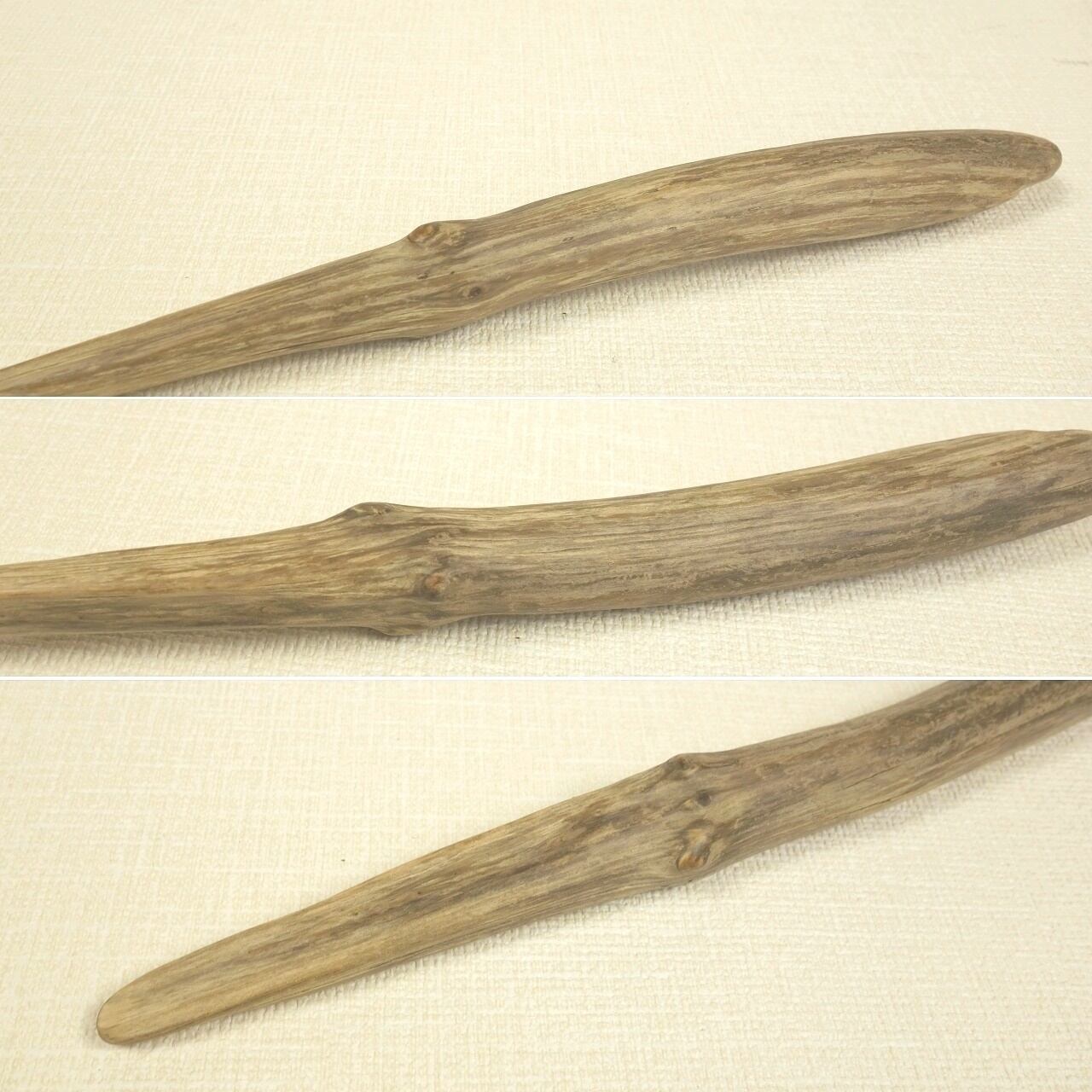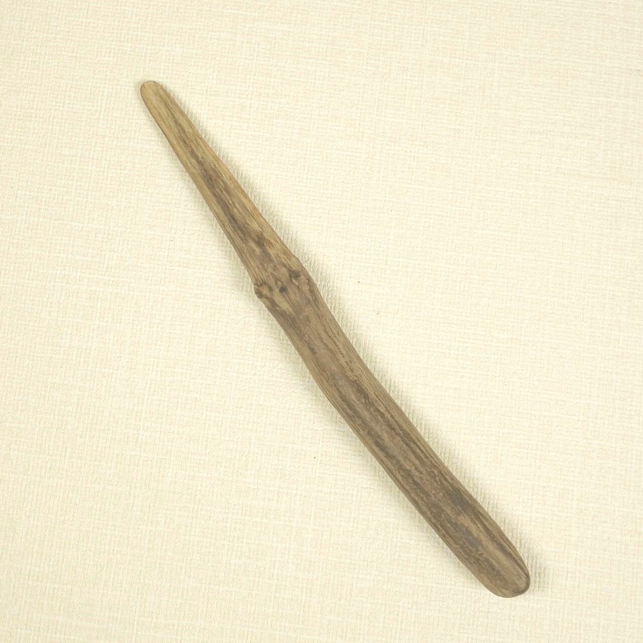 矢のような形状、持つと重い、上質流木のコンパクト棒です。細い先は薄く平たくなっています。