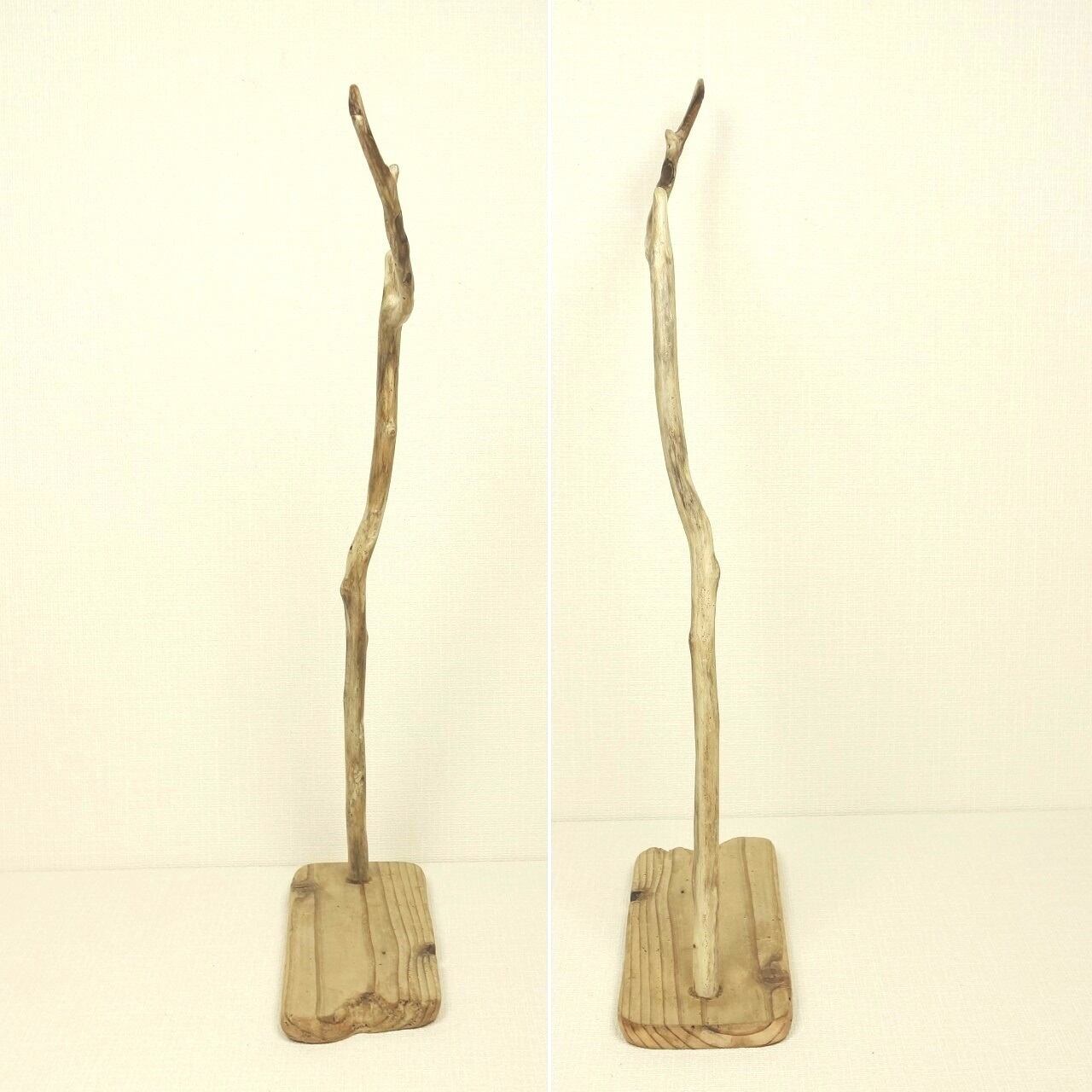 【温泉流木】流木風鈴スタンド飾り石付き006枝分かれ湾曲スリム枝 吊るし飾りフックスタンド 流木インテリア