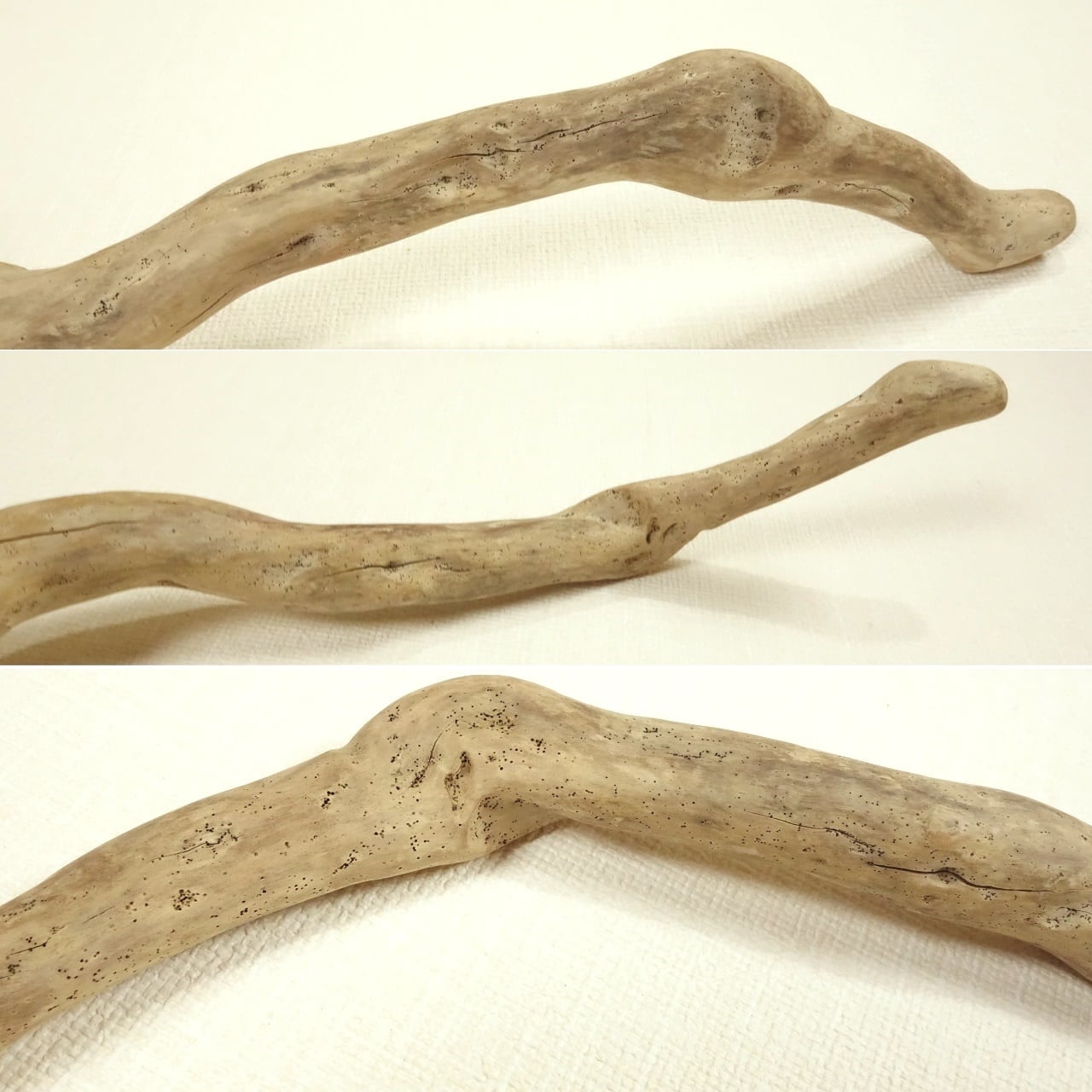 太い方の端は他の枝、または幹に接続していた部分です。また海流木のため全体的に小さな穴があいています。