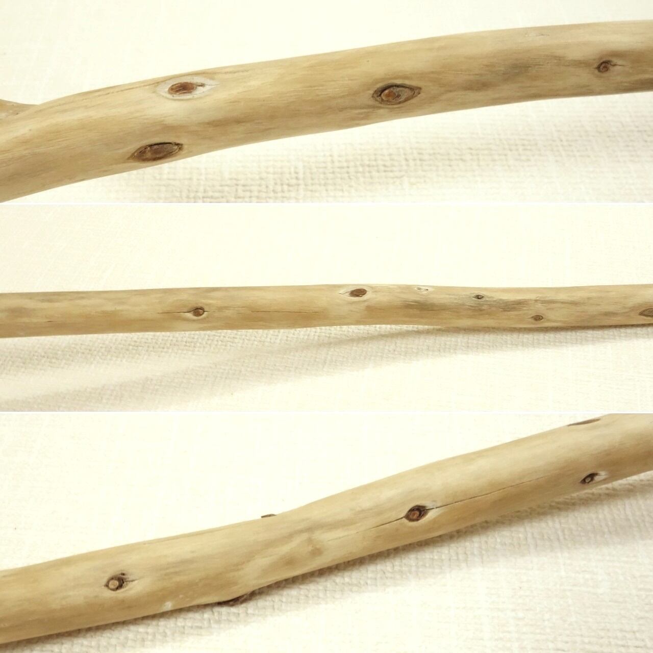 大きな湾曲カーブの美しい長枝流木、たくさんの木の節、途中飛び出るかわいい枝がみられます。