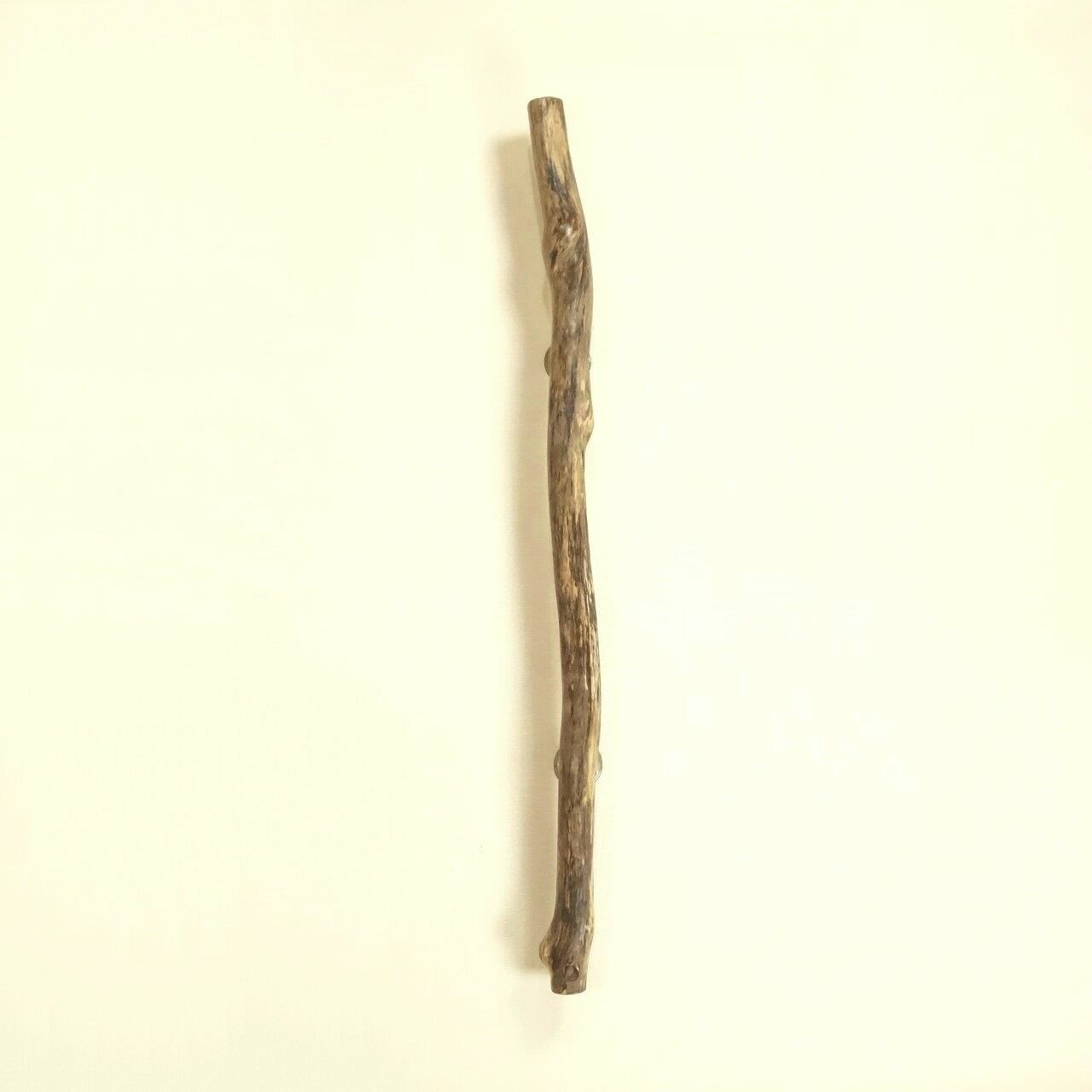 長い枝の流木、端に2つの木の節が掘れた跡、反対の端に近いところにねじれた膨らみ、バランスのよい美しい形状です。