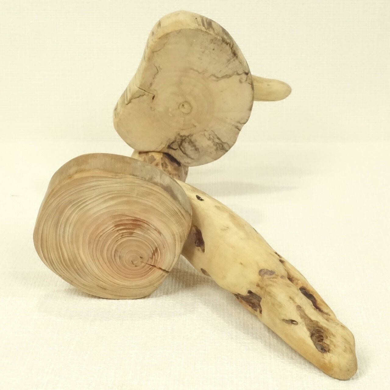 丸太流木は 上が 径 7cm ほどで きれいな年輪、下は 径6.5cm × 8cm の変則な形状、淡い年輪と色素が見られます。