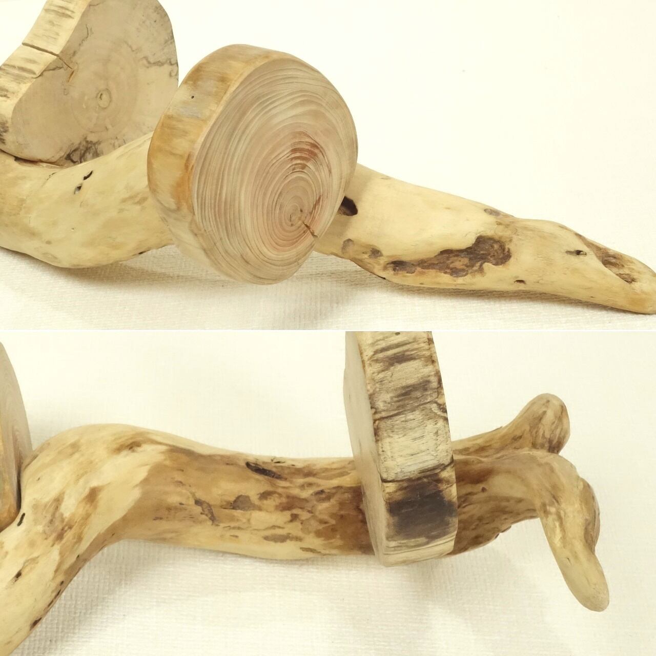 柱の変形流木は、うねりくねり、下部はアシカのヒレのようなかわいい形状となっています。