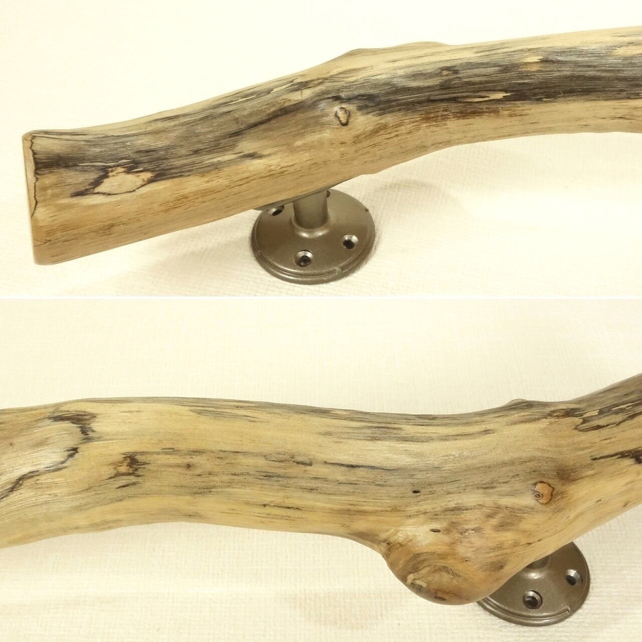 流木には保護のため ウレタンニスを塗布、金具との間はシリコンシーラントを挿入し補強しています。