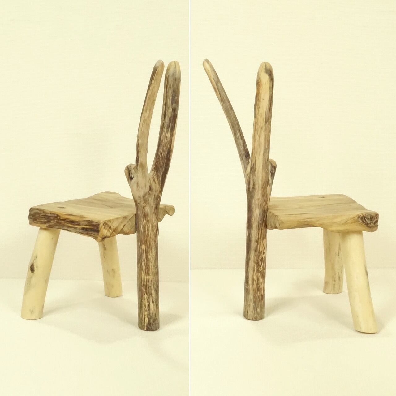 【温泉流木】かわいいバランスの椅子型飾り台スタンド005ゆらぎのある四角椅子 R040141