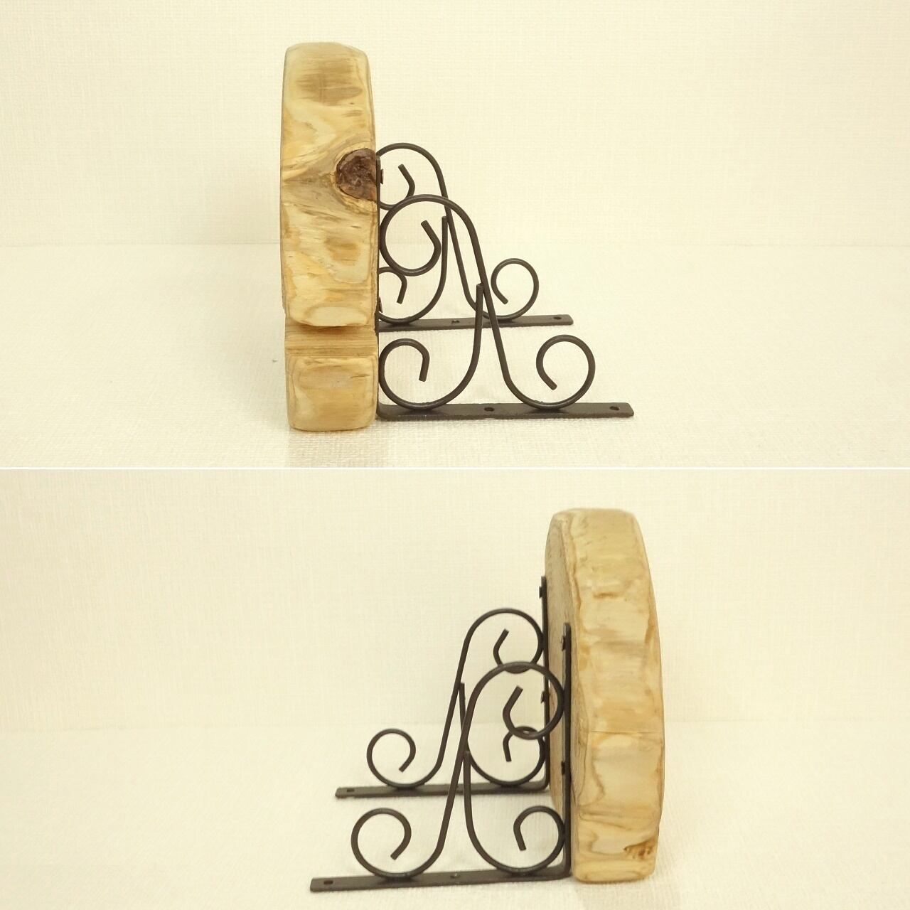 流木裏には、おしゃれなつや消しダークブラウンのL字金具を取り付け、割れの固定を兼ねます。