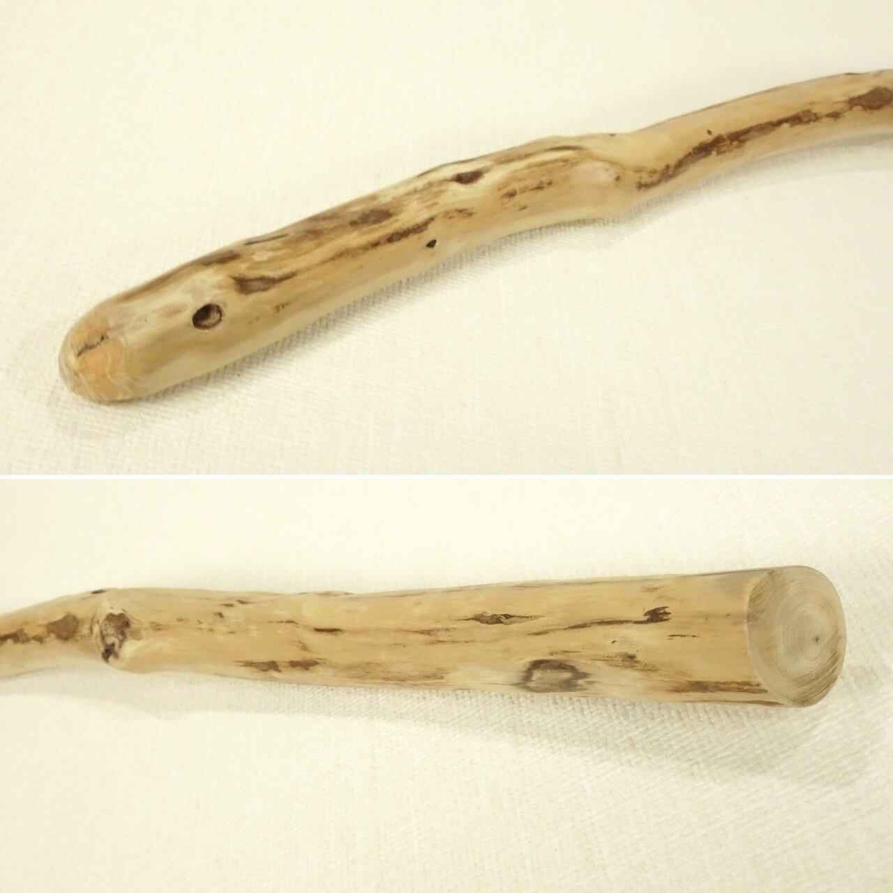 枝跡の膨らみ、そしてわずかに湾曲しながら伸びた 枝の流木棒です。