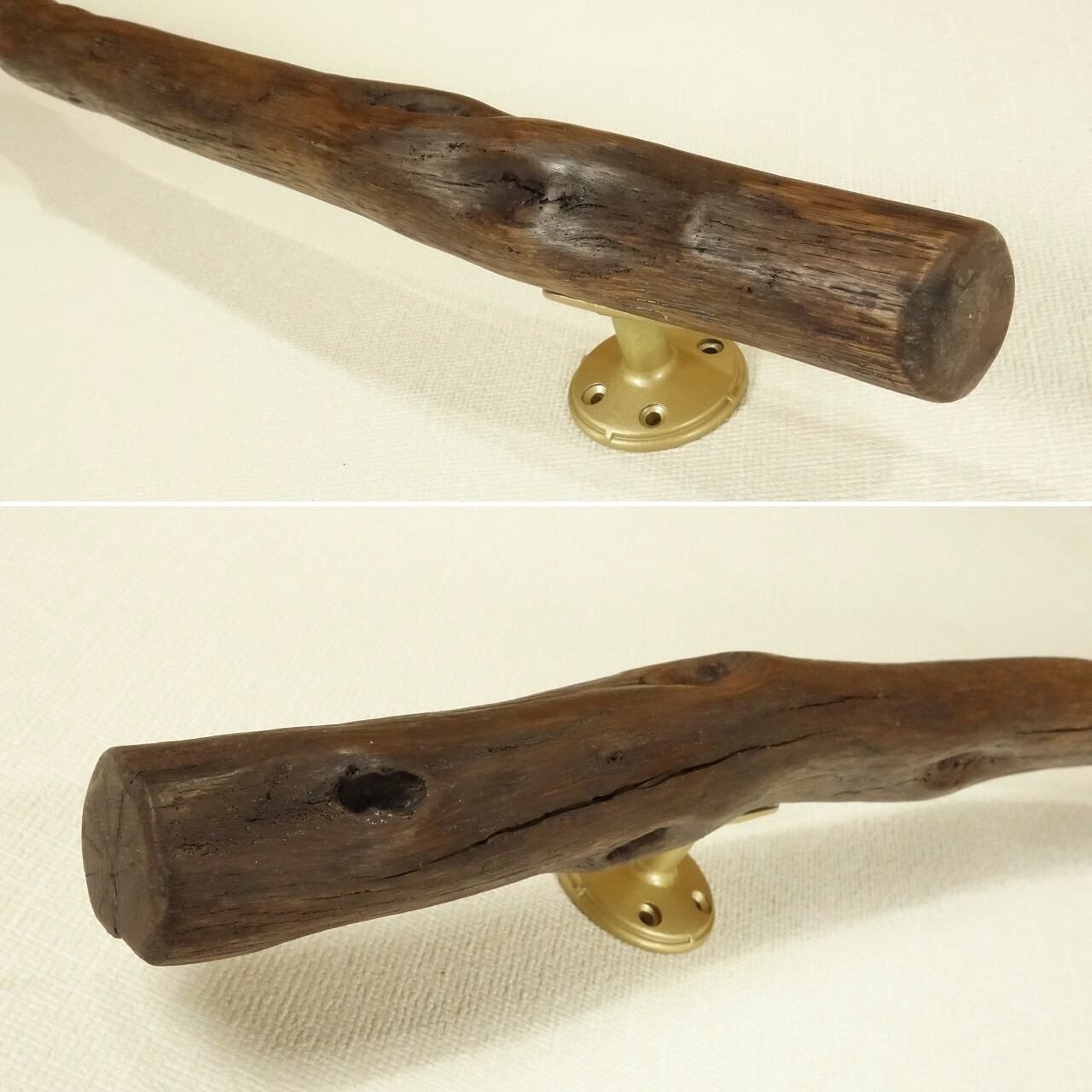 【温泉流木】窪みの形状が美しい長い流木の柿渋ドアハンドル・手すり・ドア取っ手 木製 流木インテリア