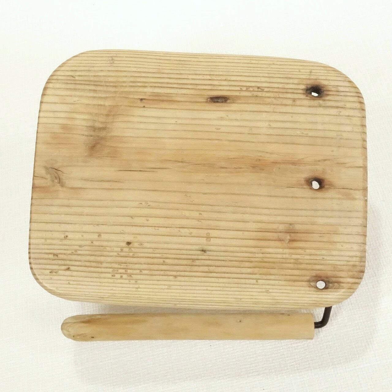 厚み 1cm ほどの 角丸四角の棚台、3つの釘穴、キズやヒビが見られる流木らしい流木です。