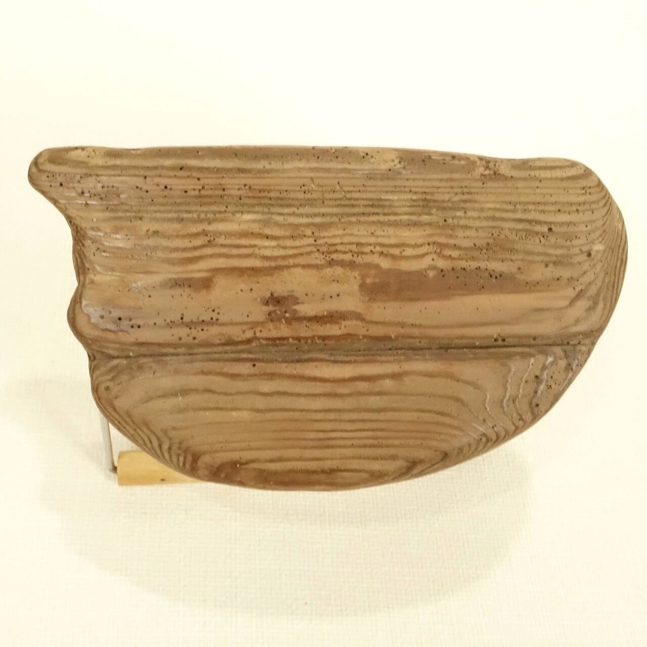 厚み 1.3cm ほどの 丸く削れた板流木の棚台、お色は つや消しのこげ茶系 です。