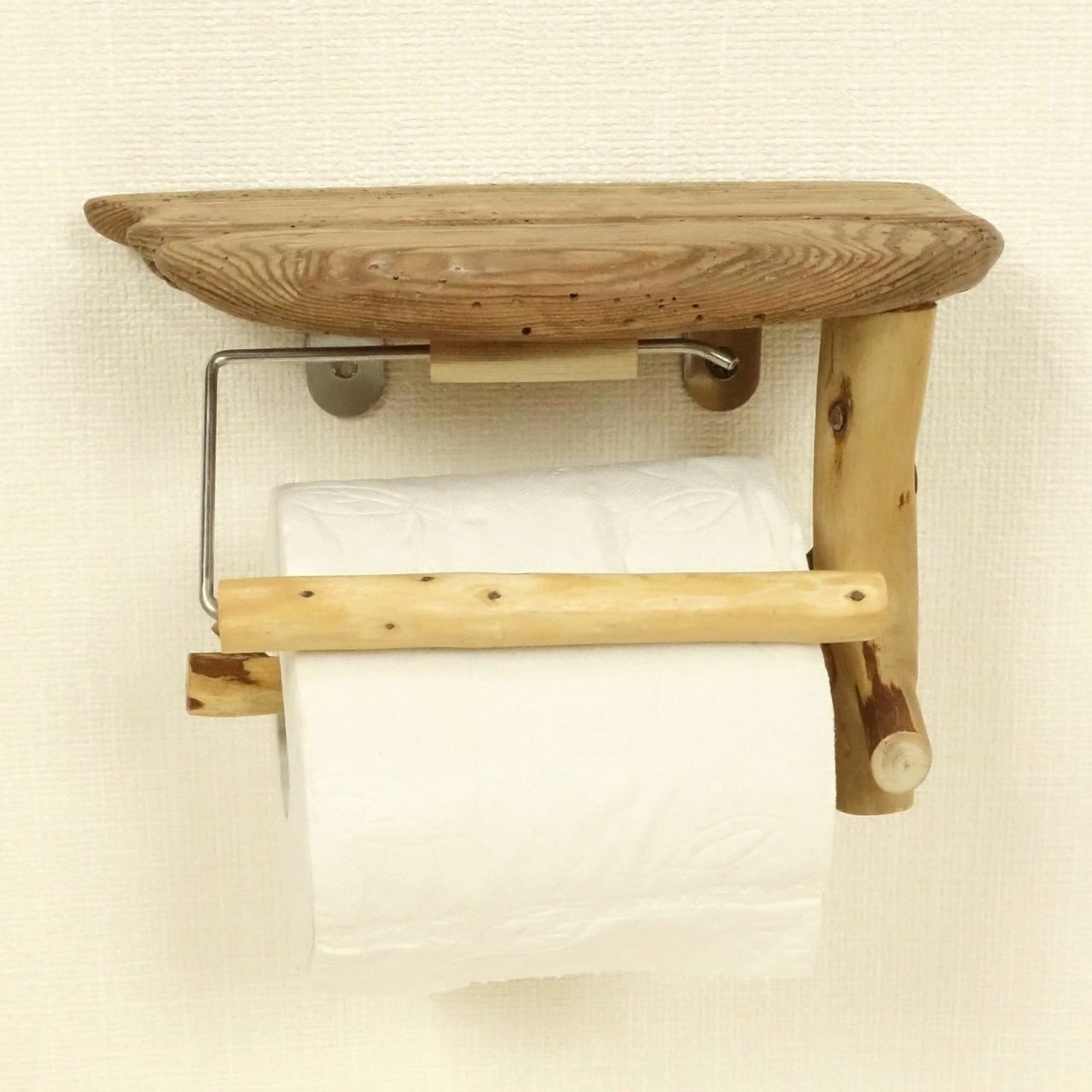 【温泉流木】茶色く丸い流木板のトイレットペーパーホルダー 流木インテリア