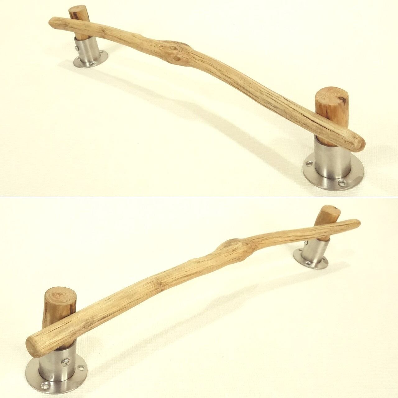 金具に枝の流木を差し込み、その上に枝流木を乗せた、しっかりとしたタオル掛けです。