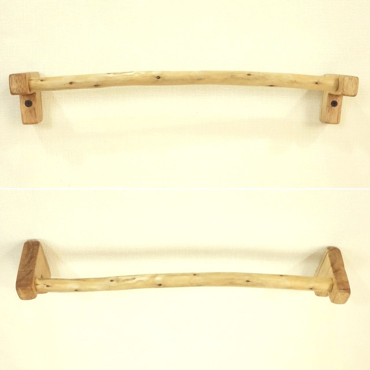 画像ではハンドタオルを掛けております。タオルを掛ける部分の幅は約 36cmほど、枝流木中央部の径は 1.6cm ほどです。