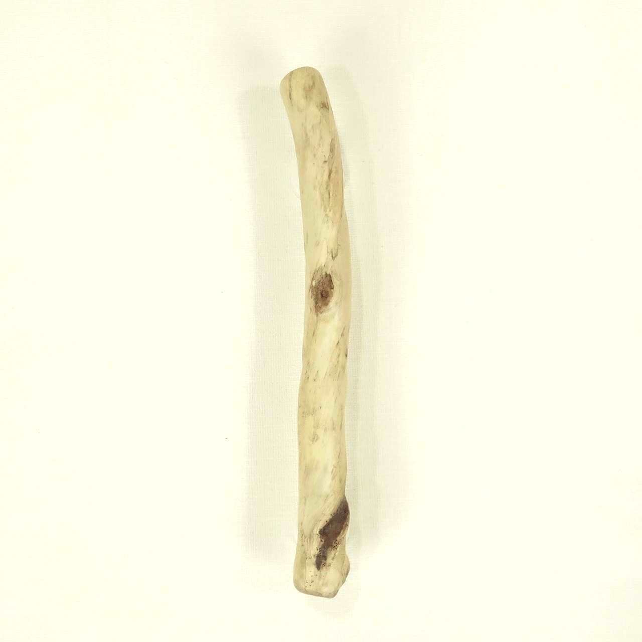少し湾曲した枝流木、らせんのくぼみは、ツル植物が巻いていた跡と思われます。