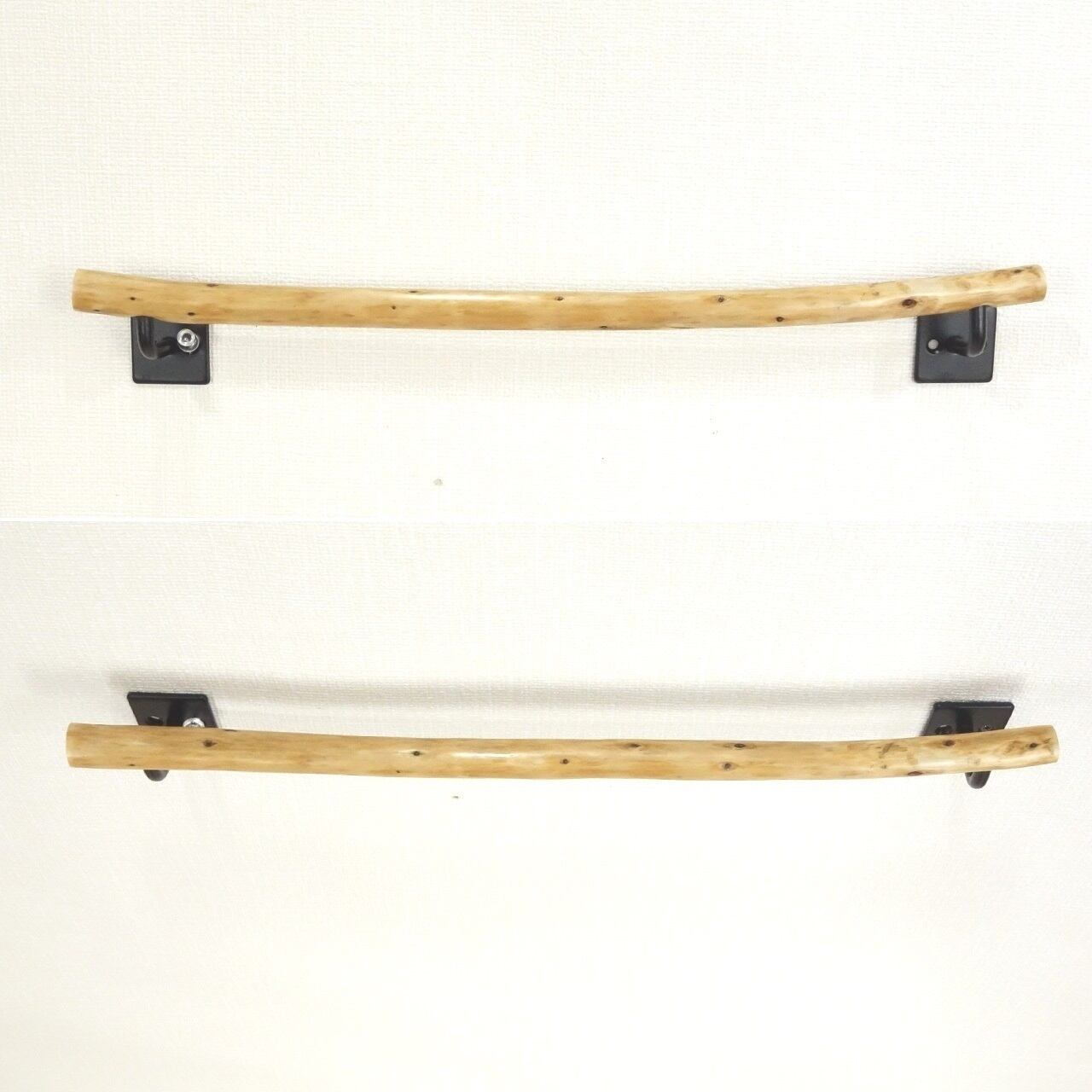 画像ではハンドタオルを掛けております。タオルを掛ける部分の幅は約 34cm、流木の径は 1.7cmです。