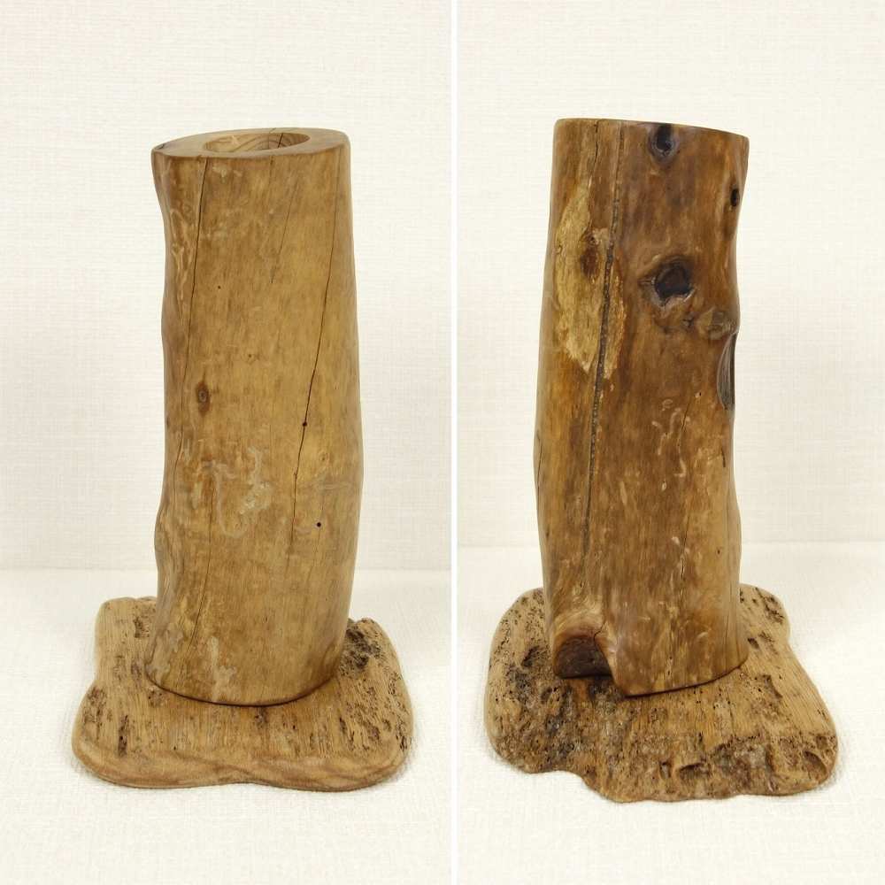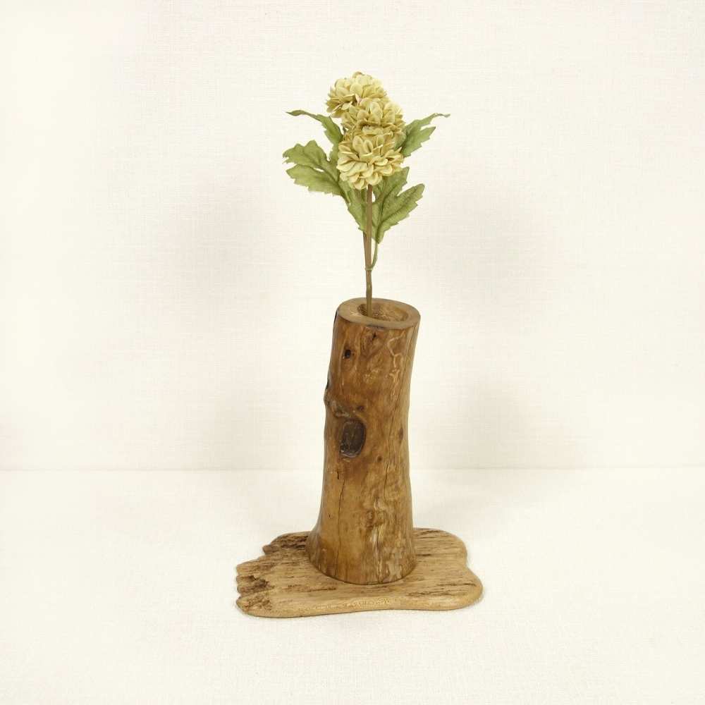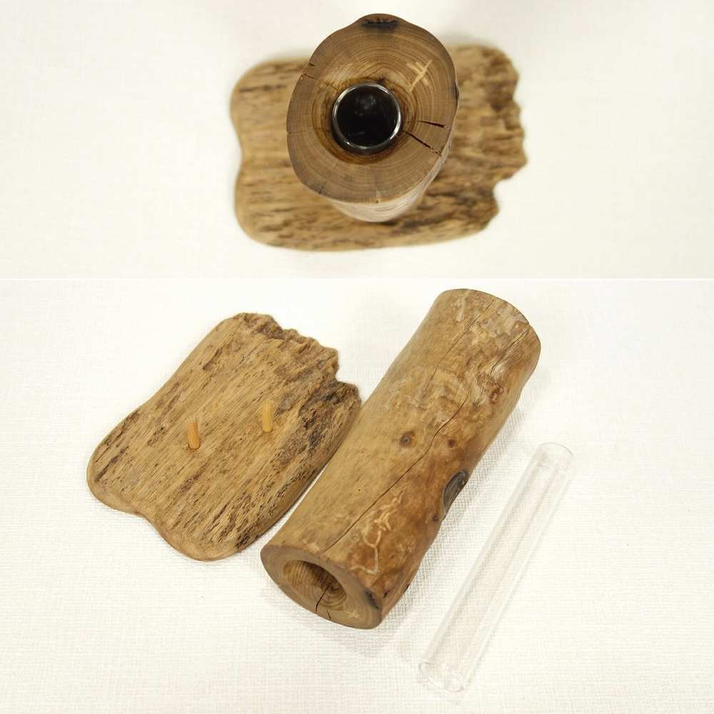 【温泉流木】流木板の台座付き渋いグラデーションの流木の一輪挿し・花器 花瓶 流木インテリア