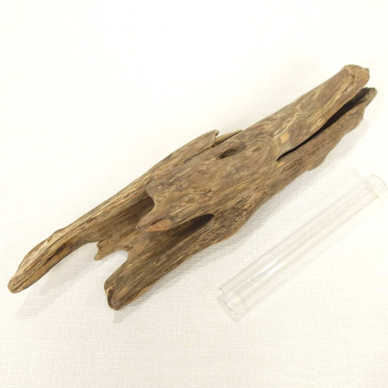 清流で採集した上質の堅い流木は、空洞になっていたり、縦に割れが入っていたり、上部には丸い穴が開いていたりします。採集したほぼそのままの形状です。