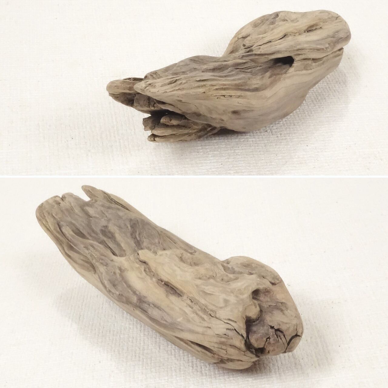 流木は丸く盛り上がった塊、縦方向に流れる木目や形状は 小さいながらにスピード感があり、高速で飛んでいきそうな雰囲気です。