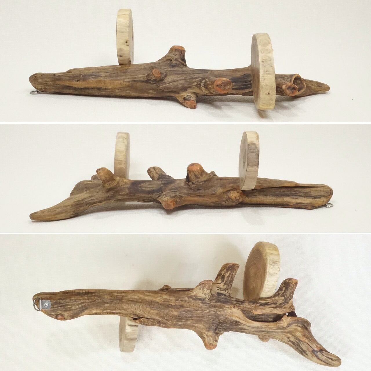 【温泉流木】個性的な流木と丸太流木の壁掛け飾り棚007飛び出るオレンジ枝の流木 R120235