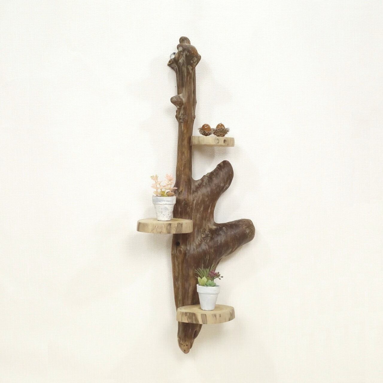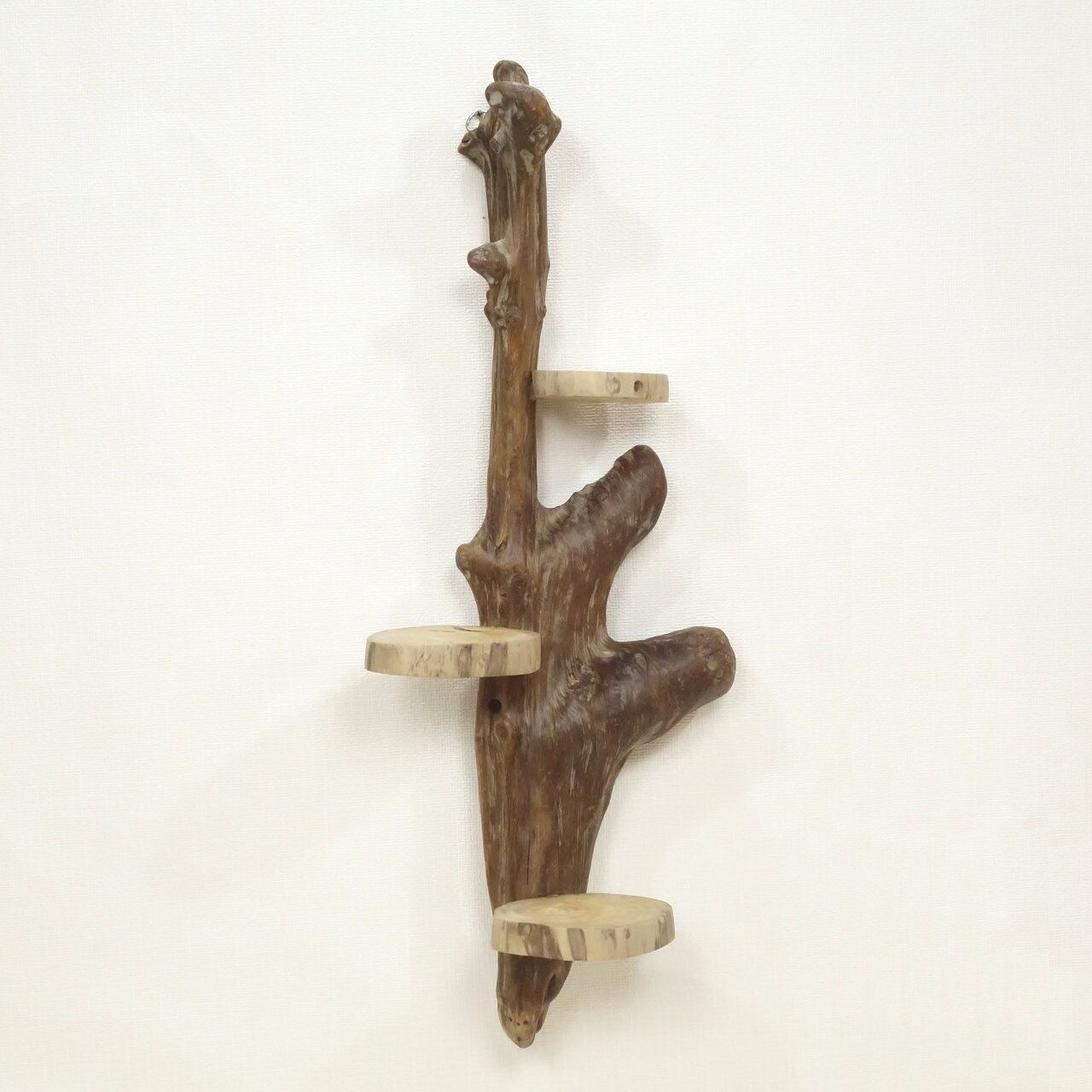 【温泉流木】個性的な流木と丸太流木の壁掛け飾り棚009ダイナミックな枝分かれの上質流木 壁掛け棚 ウォールラック 流木インテリア