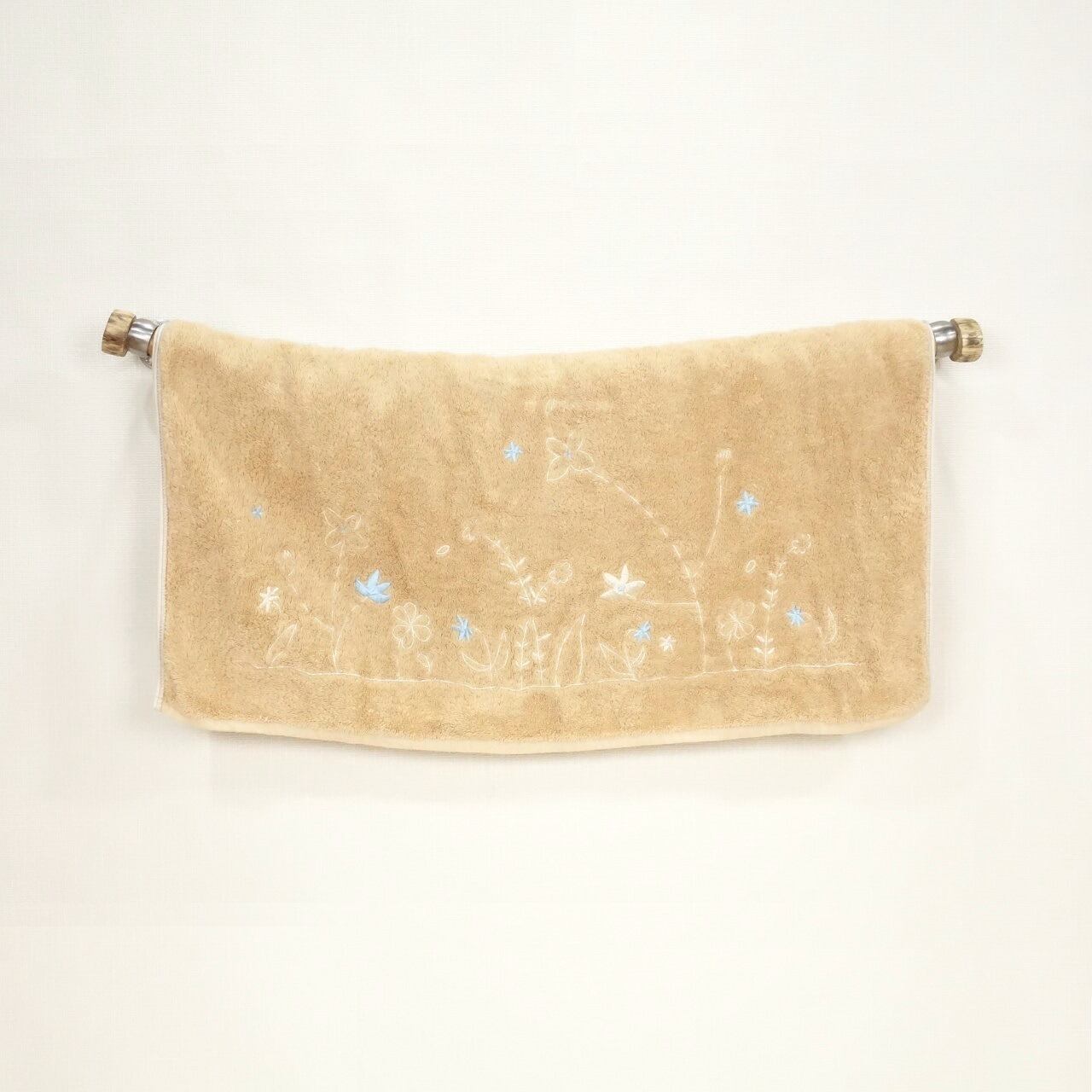 枝流木を ステンレスの金具の輪っかに差し込み、両端の止めに 少し太い枝流木を使用した、かわいい バスタオル用 タオルハンガーです。