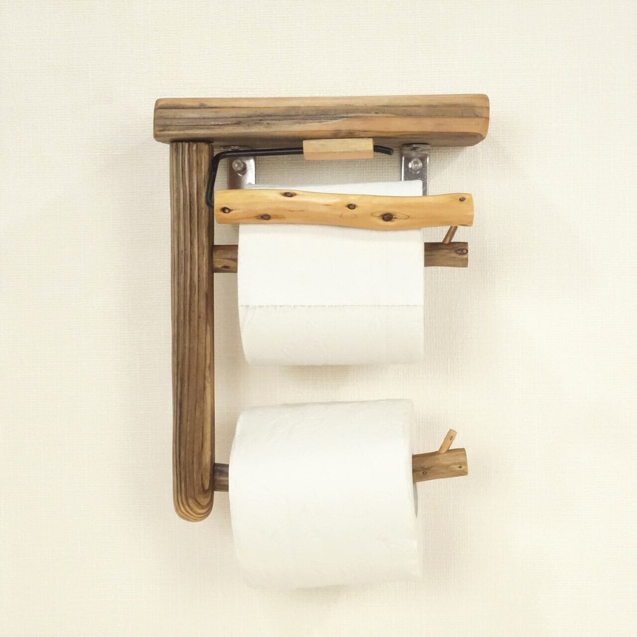 【温泉流木】やさしい年輪流木板の2段トイレットペーパーホルダー ≪オーダー品≫ 流木インテリア
