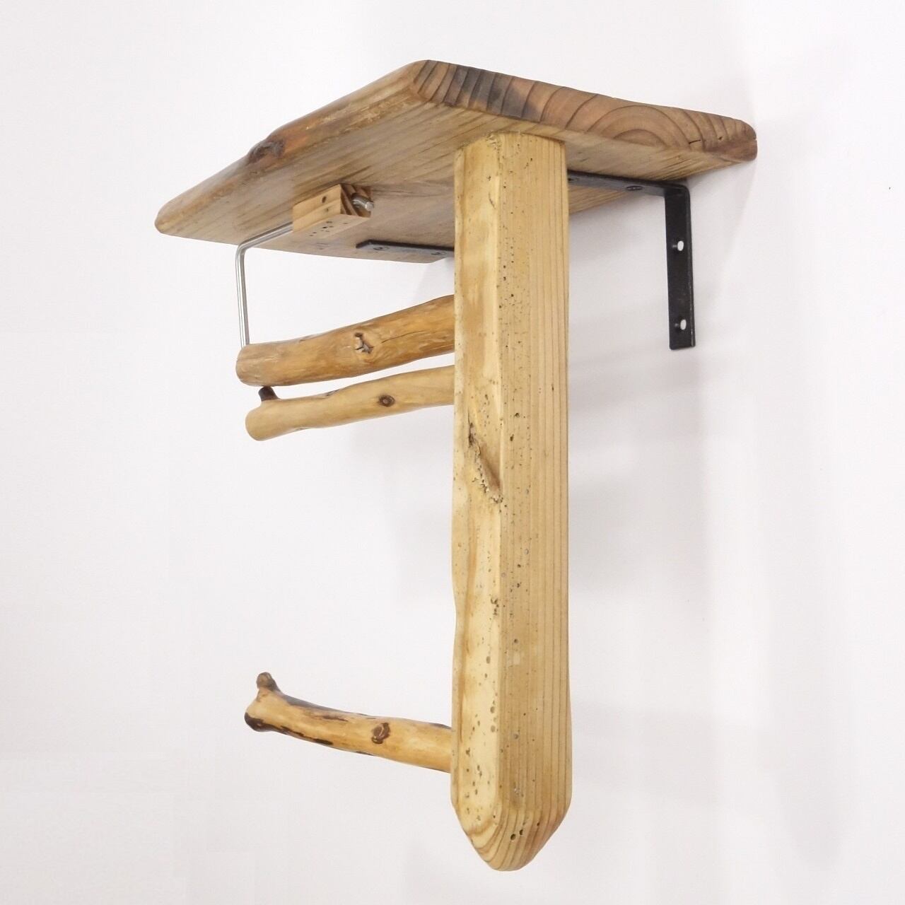 【温泉流木】木の節が躍る棚台の2段トイレットペーパーホルダー 流木インテリア