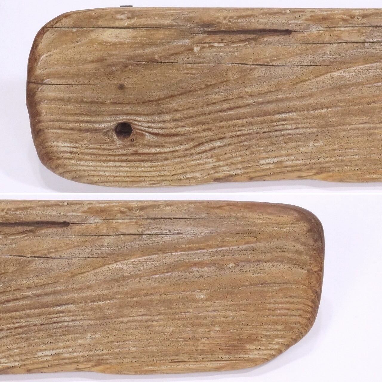 流木板は厚み 2cm ほど、横に走る浅いヒビ割れは金具で固定、しっかりした板です。