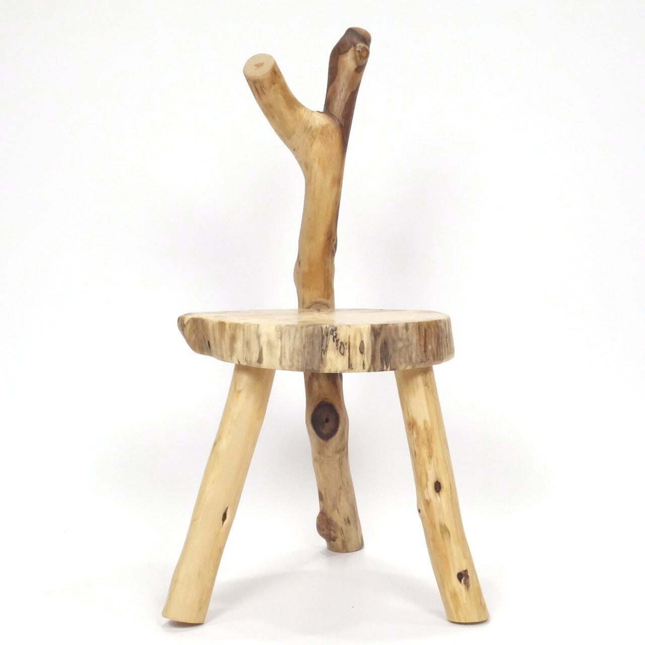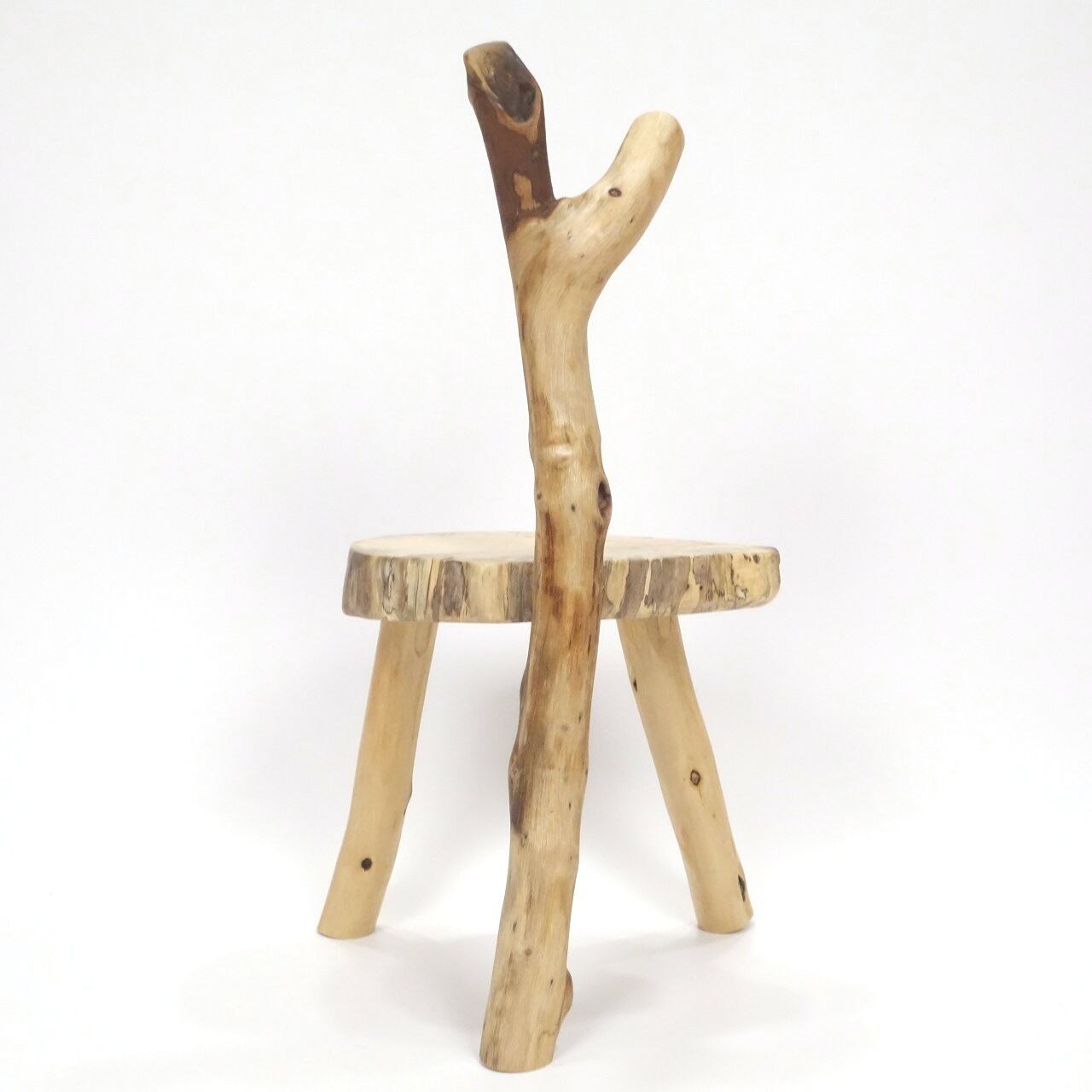 【温泉流木】椅子型かわいい丸太の飾り台スタンド008木の皮つき枝 置台 ミニ花台 流木インテリア