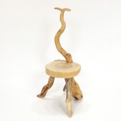 【温泉流木】椅子型かわいい丸太の飾り台スタンド013うねり枝 置台 ミニ花台 流木インテリア
