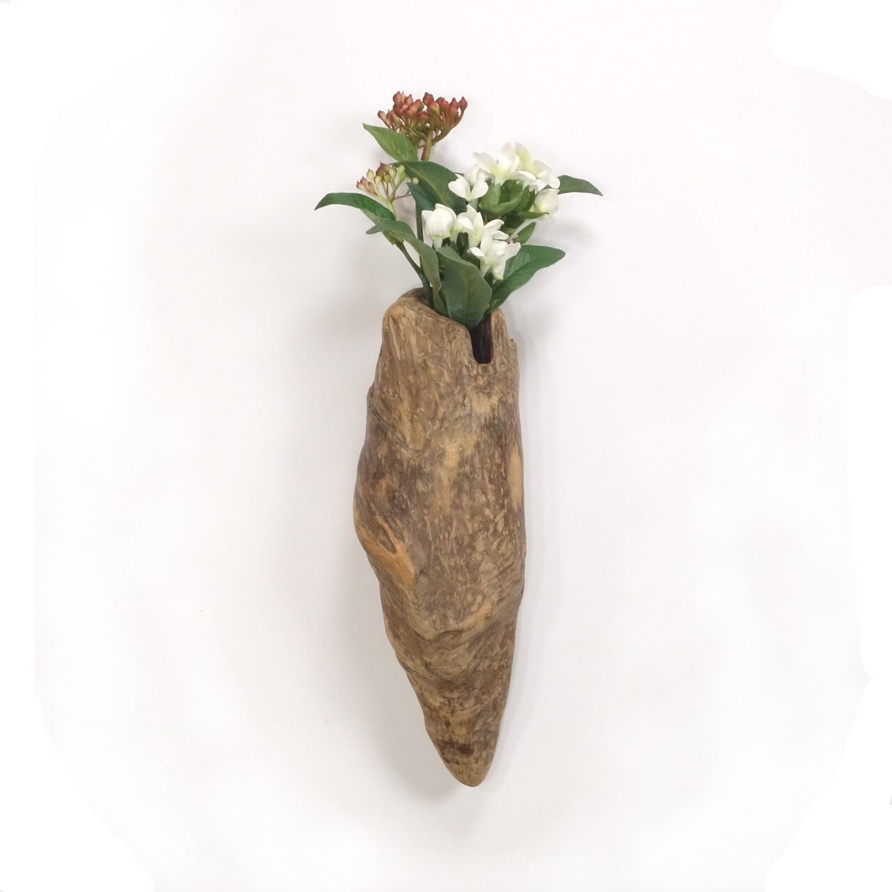 【温泉流木】立派なタケノコ型上質流木の壁掛け花器・一輪挿し 花瓶 木製 流木インテリア
