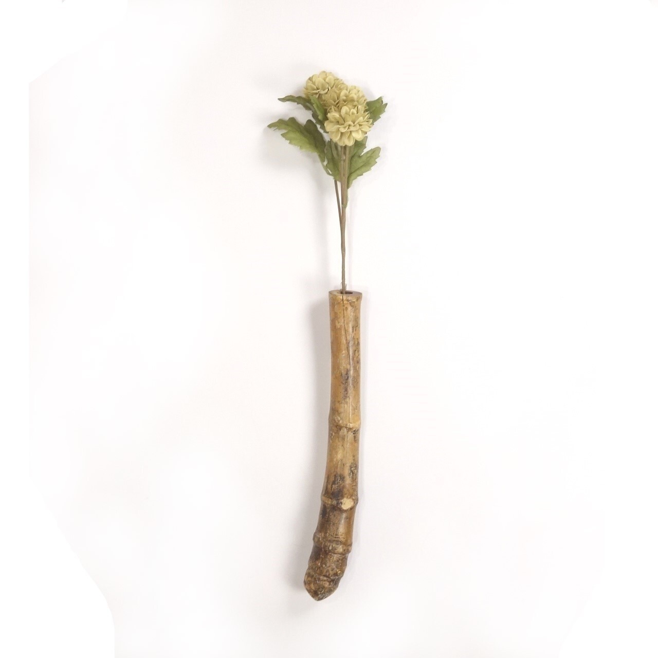 【温泉流木】流木竹のフェイクフラワー用壁掛け一輪挿し002ブラウン R050154