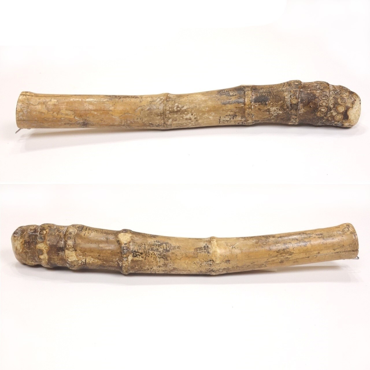 スリムな竹の流木、下部の曲がっている部分は 根の部分で、節を見ると小さな丸いものが並んでいますが、そこから根っこが生えていました。先は削れています。