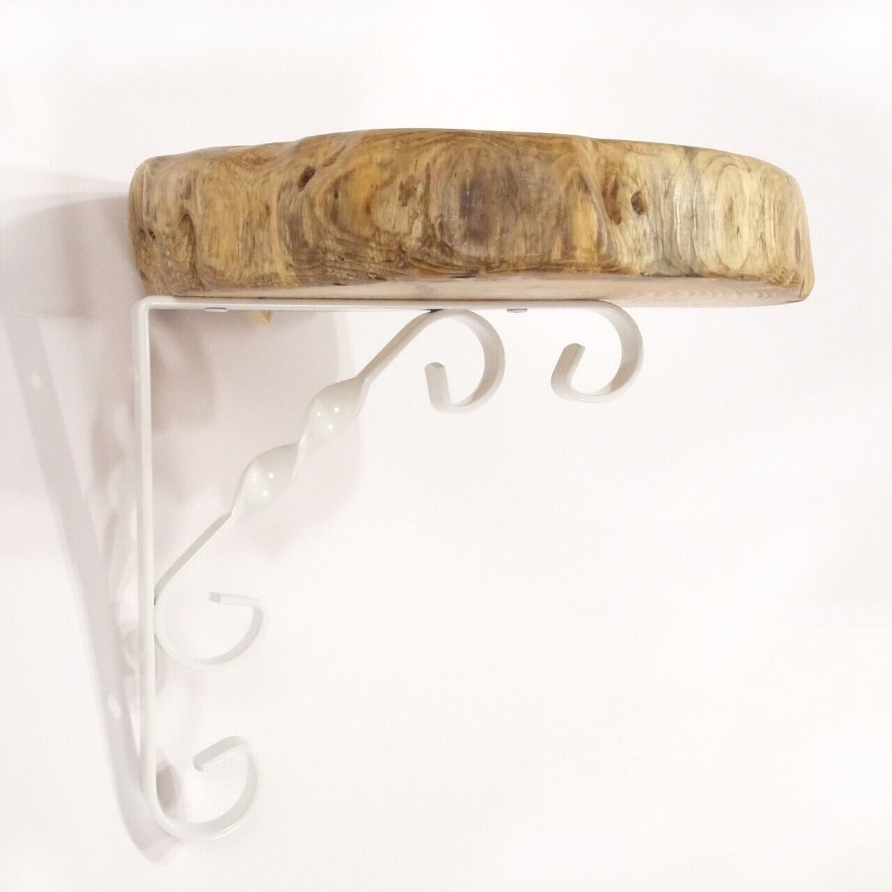 【温泉流木】年輪美しい大判スライス丸太流木の壁掛けラック005ホワイトねじり足 壁掛け棚 ウォールラック 飾り棚 円形
