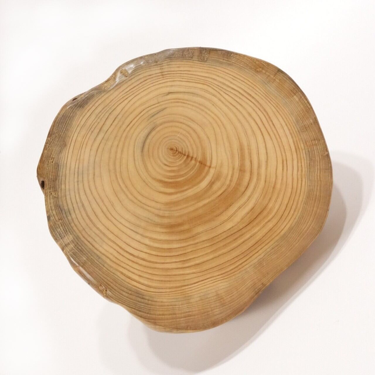 直径 20cm ほどの丸太流木をスライス、おだやかなキレイな年輪が見られます。