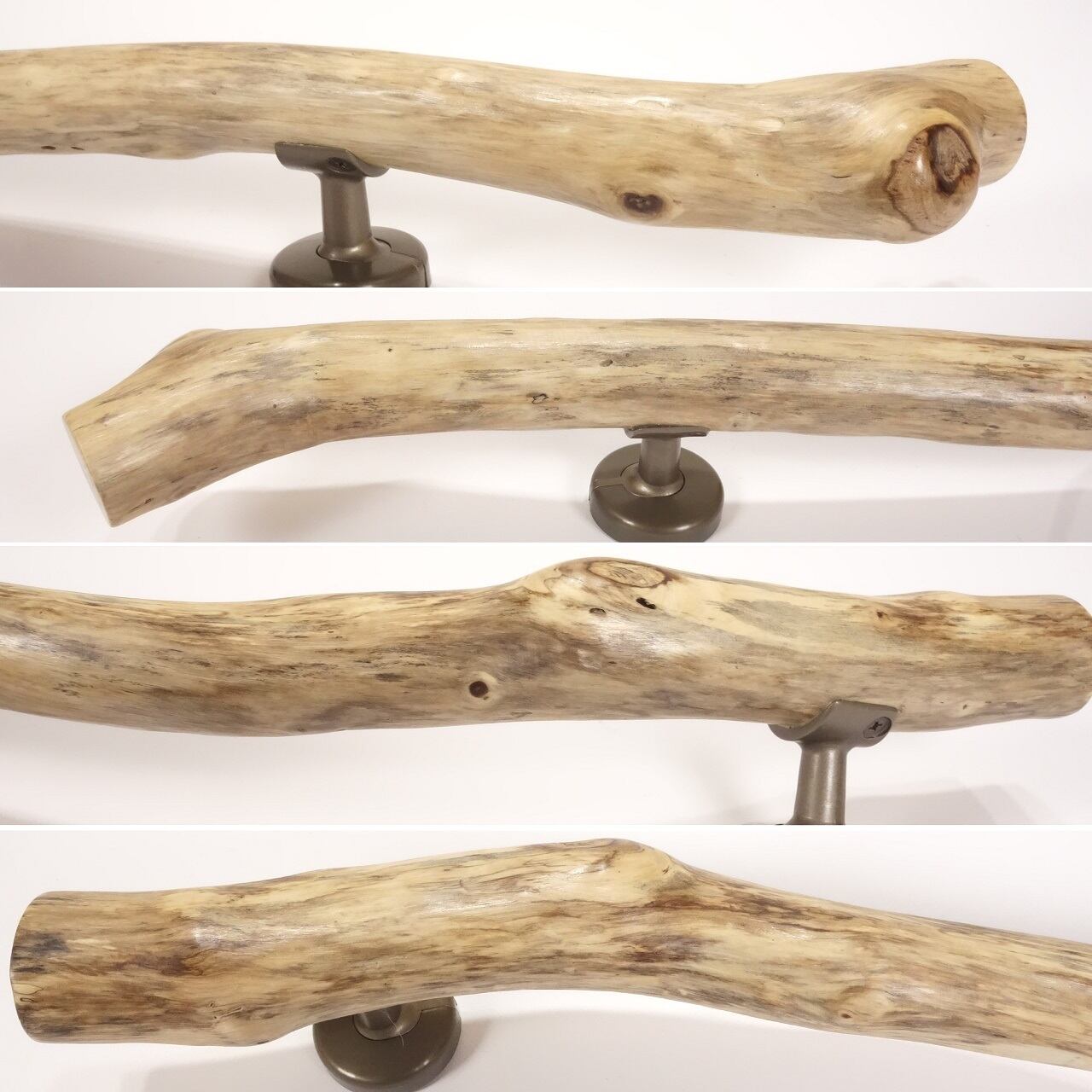 【温泉流木】色素の模様が美しい枝跡ある曲がり流木のドアハンドル・手すり 木製 自然木 流木インテリア