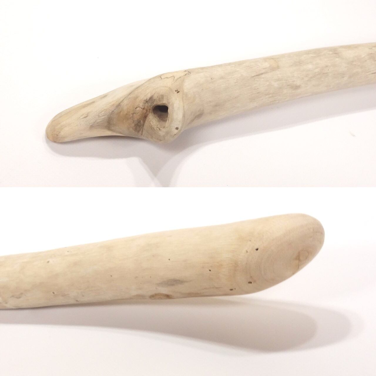 先には直角に突き出た小さな枝分かれ、枝分かれ側面は 削れ、上には穴が開いています。