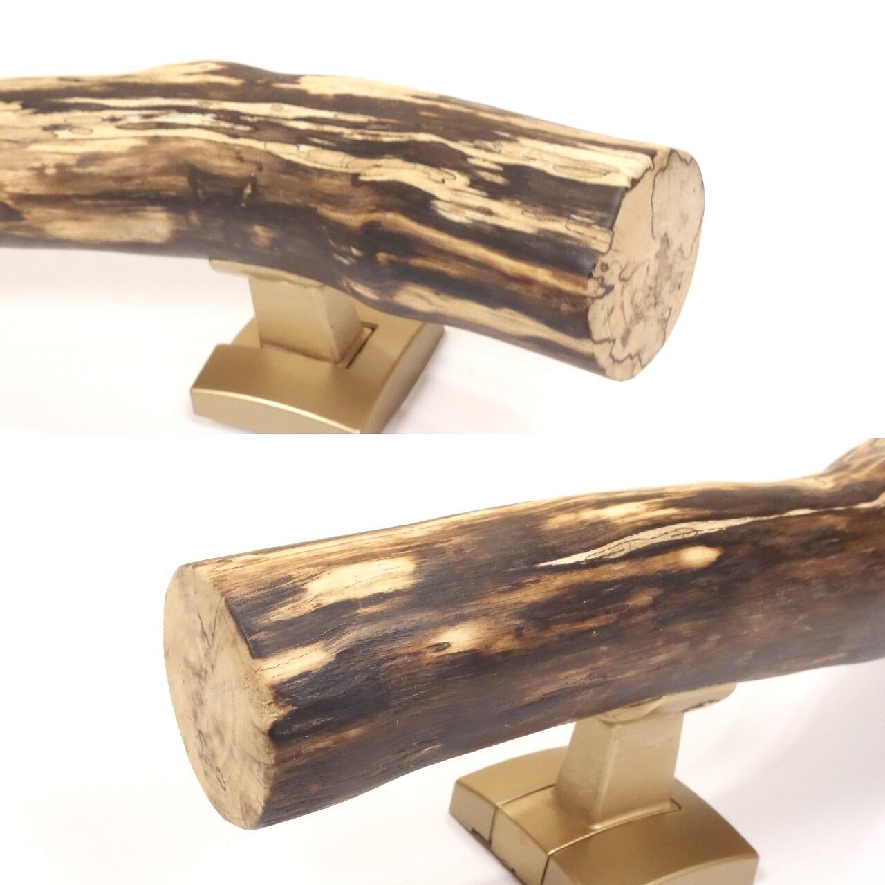 お色は 明るい木の色に、ダークブラウン系の木の表皮 および 色素が色濃く残っています。