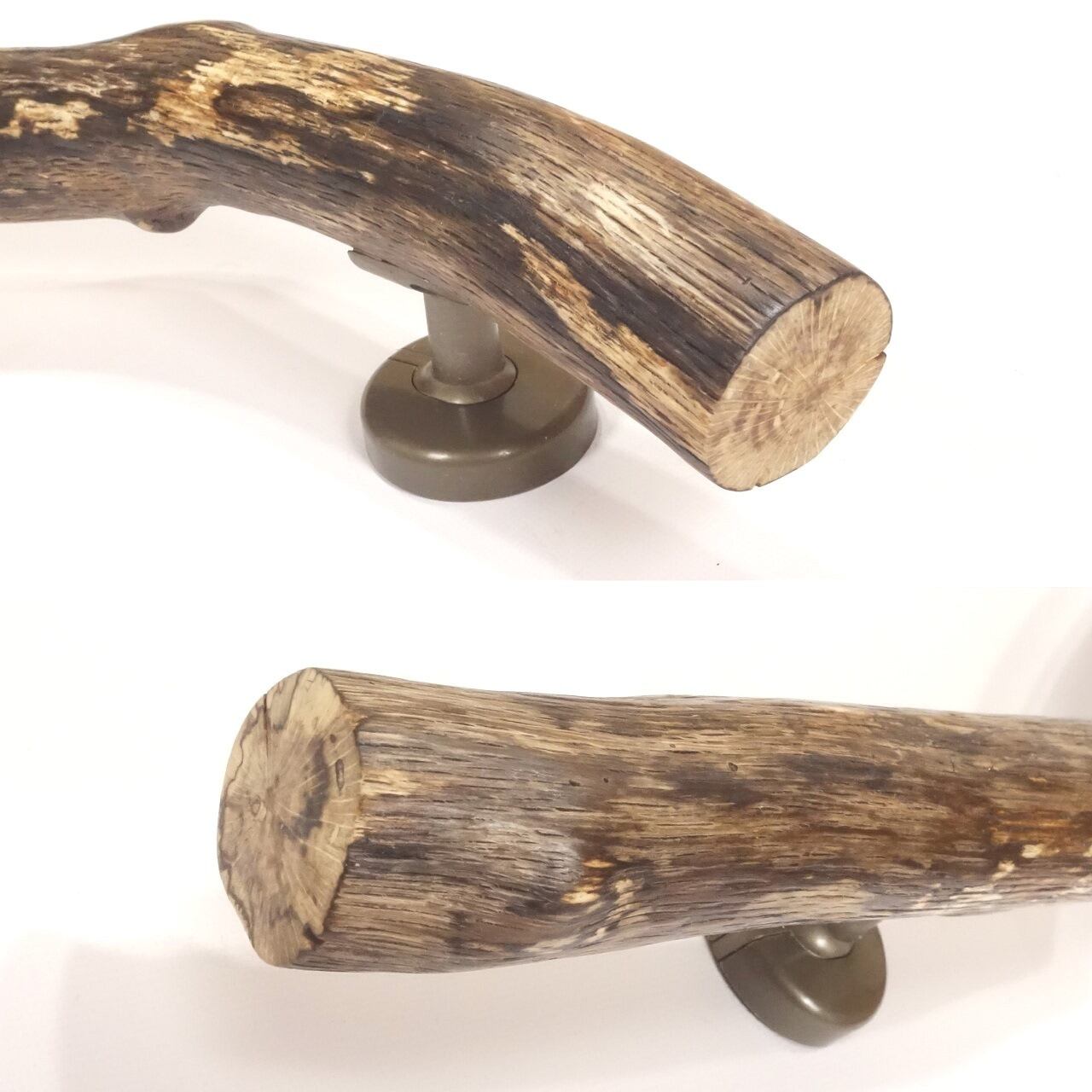 【温泉流木】粗め肌ダーク色の曲がり流木ドアハンドル・手すり 木製 自然木 流木インテリア