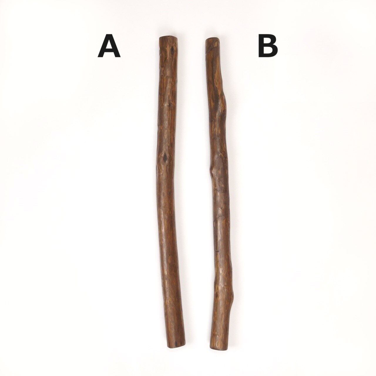 比較的まっすぐ系の2本の枝流木、どちらも金具を取り付けていない ドアハンドル・手すり用の流木です。