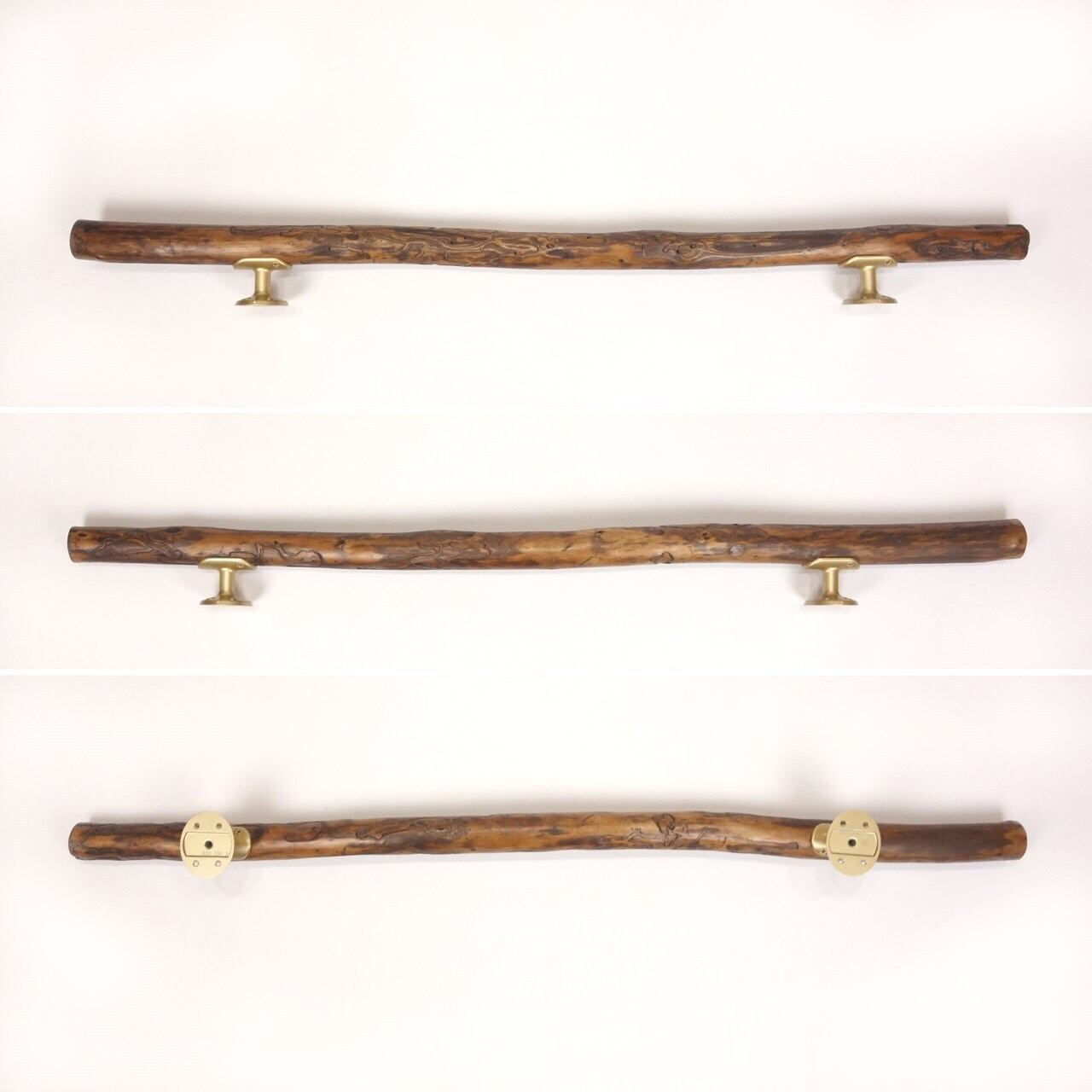 【温泉流木】柿渋色に刻印模様美しい流木ドアハンドル・手すり ≪オーダー品≫ 木製 自然木 流木インテリア