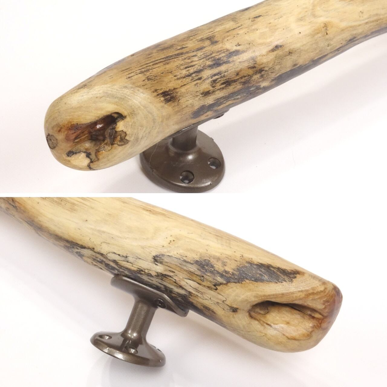 【温泉流木】焼き目模様のある曲がり流木ドアハンドル・手すり 木製 自然木 流木インテリア